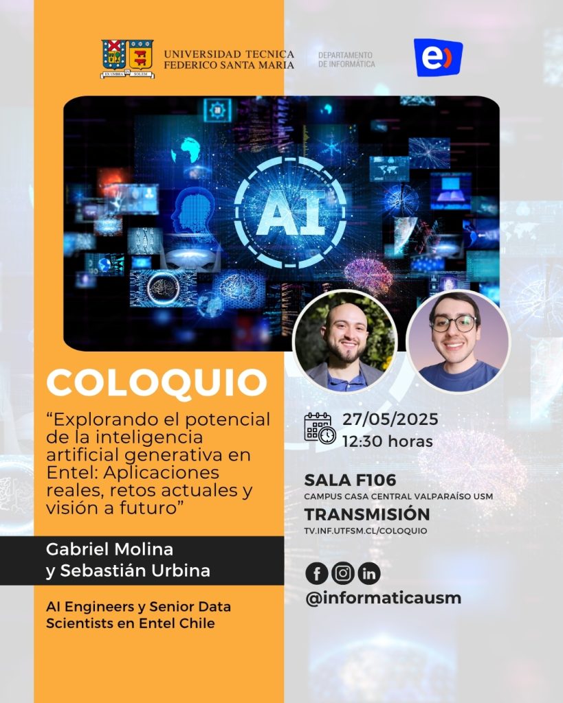 El Departamento de Informática, junto a Entel, les invita a participar de su próximo coloquio.