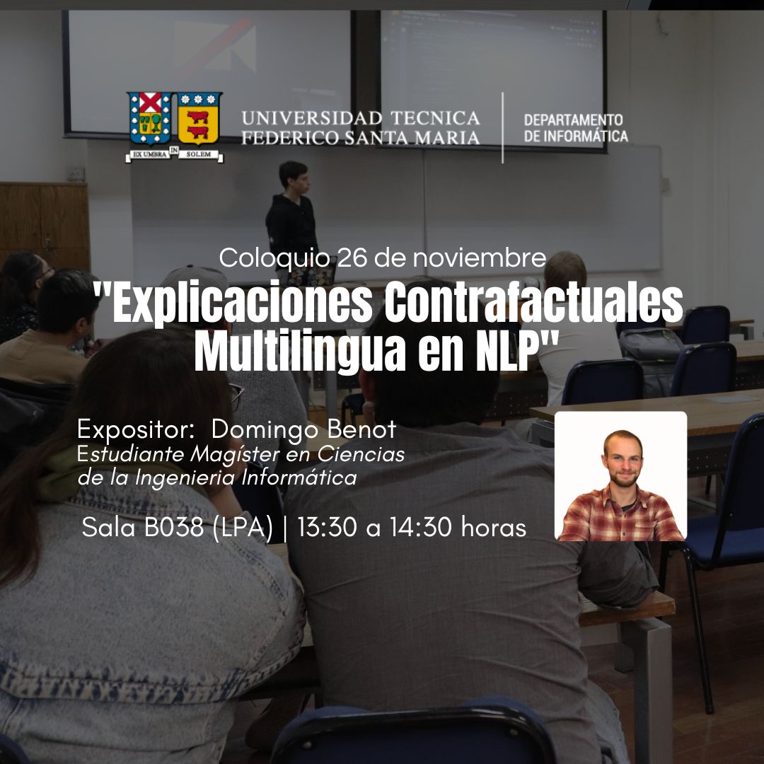 Alumnos de postgrado en campus San Joaquín invitan a participar de una serie de coloquios sobre sus investigaciones, abarcando temas como NLP, Auto-supervisión, Ingeniería de Software, Astroinformática, Representation learing, IA aplicado a Imágenes.