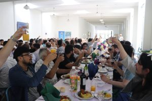 Y para recordar otro momento de su paso de la universidad, el almuerzo se realizó en el casino central, donde tuvieron que pasar por la línea a buscar su plato principal. Un ambiente que estaba amenizado por música en vivo, gracias al apoyo de la Red de Exalumnos de la universidad, que también obsequió agendas y organizó el café de bienvenida. El profesor Luis Hevia realizó, por su parte, se encargó del brindis, invitándoles a ser parte activa de la comunidad informática a través de las diversas actividades formativas y recreativas.