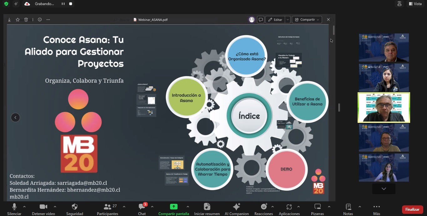 Gracias a un webinar organizado por el Departamento de Informática junto a Asana, cerca de 40 participantes pudieron conocer sobre la importancia de manejar herramientas de gestión de proyectos.